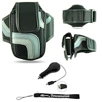 Black Adjustable Deluxe Sportband / Workout Armband with Adaptable Neck Strap for HTC G2
