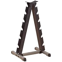 It is attractively finished, and stores my 6 sets of ''bells, from 10lb to 35lb with ease. It is very stable, and keeps the dumbells well organized and easy to access.