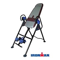 I''m a woman, mid 40''s suffering with chronic lower back and right knee pain for going on 8-9 years. I take a med. which helps with chronic muscle soreness which is probably due to common stress over the years. A teacher friend of mine told me about his inversion table and less than a week later I had my own table. I am using this machine for meditative as well as physical therapy. Losing weight is not a goal but loosening up my muscles and joints and learning how to focus more on my mind and body is my goal. If I wanted to do some ab. muscle work this table is a great option for that...hence the name "AB Training Inversion System". This table has it all. It''s very well made and durable and will last certainly a very long time. One of the first main attractions of this table for me is the wood padded polyurethane foam cushion back and head rest. The nylon covering over the cushion is well made. I would have probably picked a different color than maroon but the silver inset color looks really nice. It comes with a lumbar support which is a much needed comfort for me. The locking mechanism is probably the most important and versatile part of the machine. I highly recommend this particular model because of all of the bells and whistles which makes this a complete stretching machine. The bar on the bottom of the unit helps stabilize you when fully inverted. I could easily fall asleep on this machine because of the feeling of weightlessness. Bending your knees slightly will help you come back up when you are finished with your excercise. Go at your own pace and stretch out little by little until you feel your back start stretching and/or popping. Breathing really helps and is essentially the most important part for any type of excercise. After using this incredible machine for one night, off and on for about 2 hours, I woke up the next morning feeling refreshed with no soreness and ready to use it again. This machine is fairly big and can take up quite a bit of space, but it does fold up. It''s pretty heavy too. I am more than happy (thrilled) with my purchase, and less than a week ago this machine was almost $10 more than what it shows this 2nd of March. So this is a very good bargain and well worth the cost. I have Amazon Prime so the shipping was free.Want IronMan LXT850 Locking Inversion Therapy Table Discount?